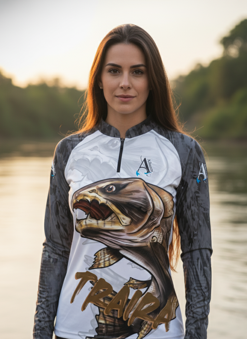 A Camisa de Pesca Feminina UV50+ Traíra Fera das Águas Tempest foi desenvolvida especialmente para mulheres que amam pesca esportiva e atividades ao ar livre, unindo proteção, estilo e conforto em uma peça pensada para o corpo feminino.