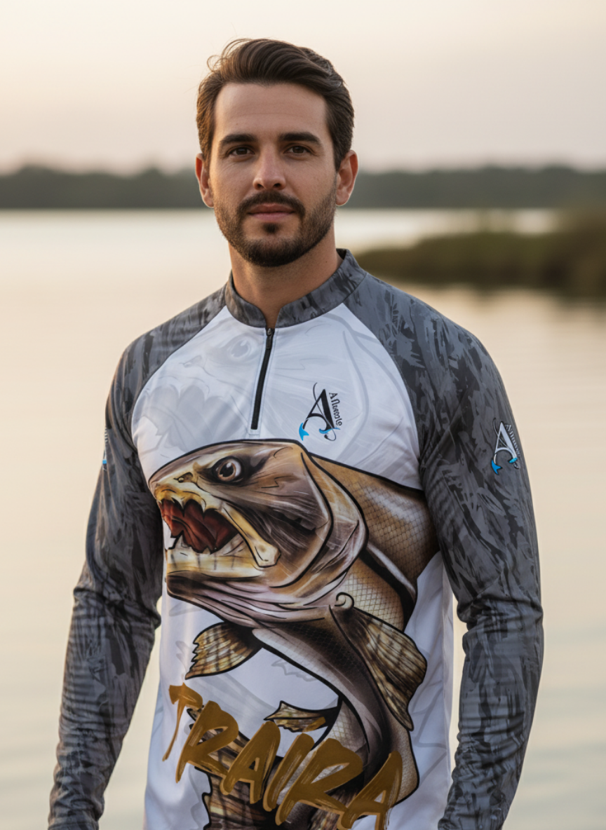 A Camisa de Pesca UV50+ Traíra Fera das Águas Tempest foi desenvolvida especialmente para pescadores e amantes de atividades ao ar livre que buscam proteção, conforto e estilo.